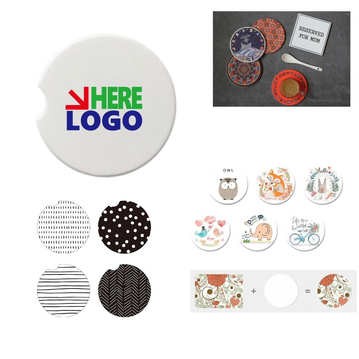 Additional InformationAbsorbent ceramic car coasters keep cup holders dry and clean. Stylish, fade-resistant design. Customizable for a unique gift! Orders of 2,000 pieces or greater are eligible for sea shipping.